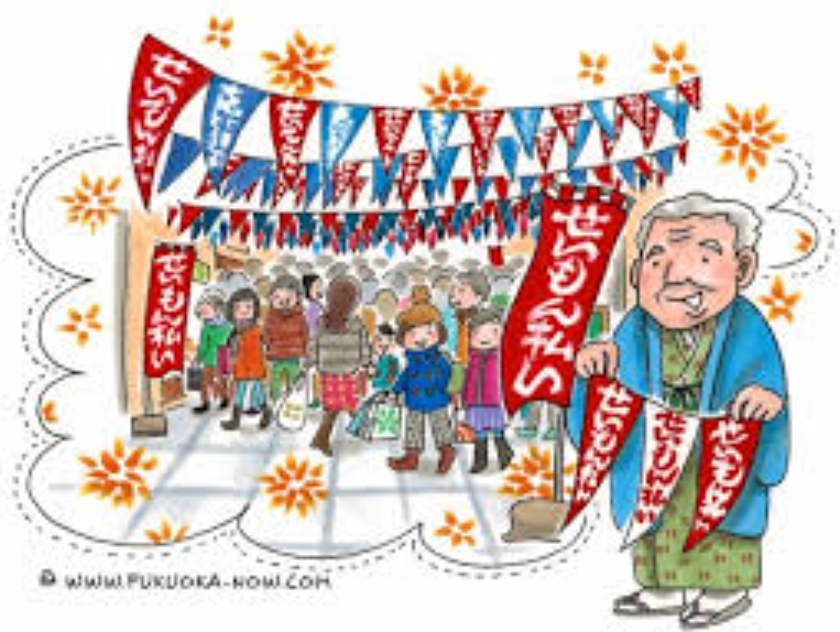 せいもん払いの起源は明治12年(1879年)にさかのぼり、大阪のえびす祭り(商売の神の祭)の大安売りをヒントに博多商人が独自に始めました。 初年度は27店の呉服屋が参加した小さな売り出しでしたが年々参加店が増え、現在では川端商店街や新天町商店街、天神の百貨店など多くの店が一斉に参加し、地域全体が盛り上がります。